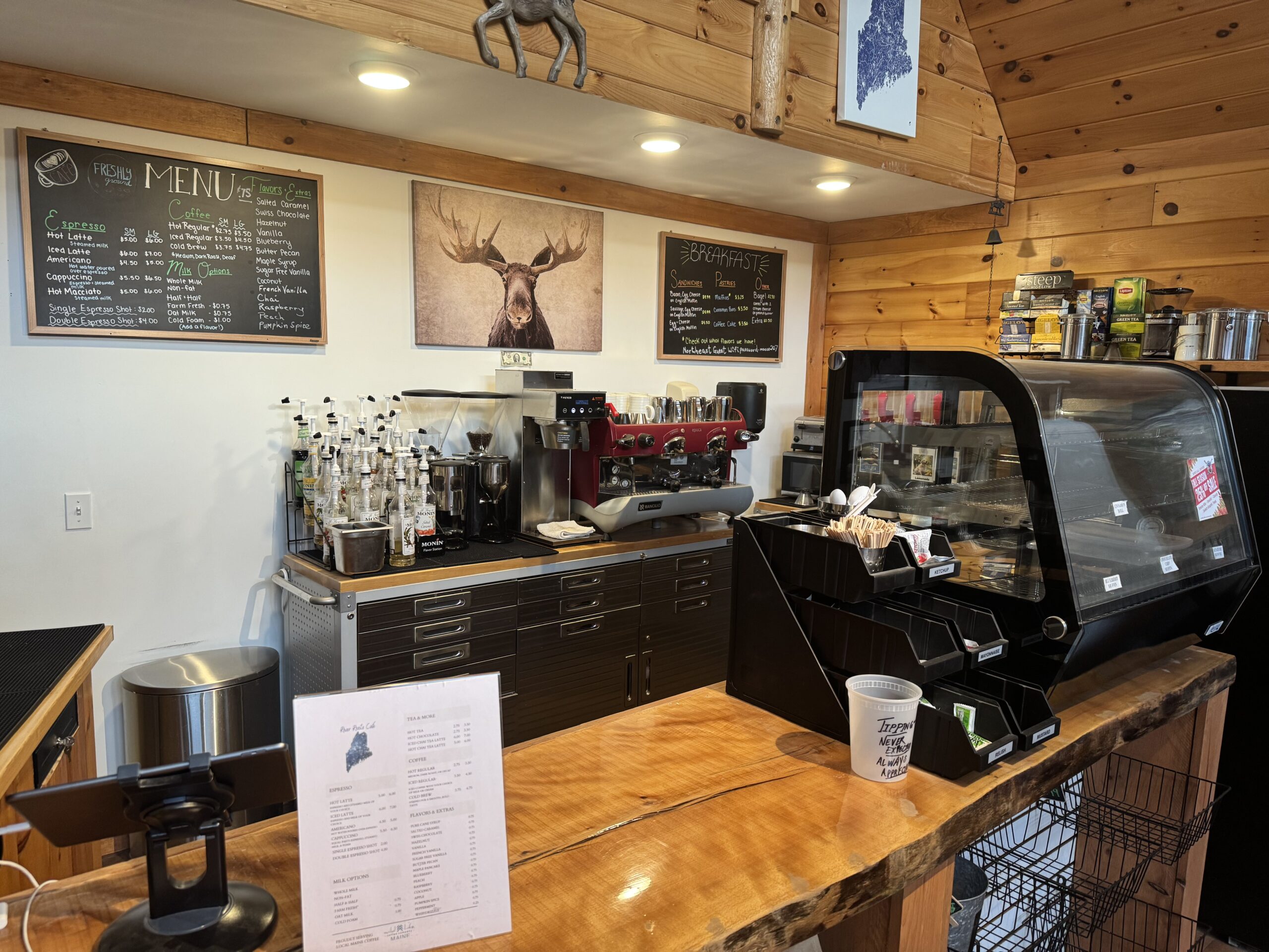 Welcome to the all-new River Roots Cafe, your ultimate destination for delicious eats and treats in the Moosehead Lake Area. Now open and ready to serve you! As an exciting addition to our offerings, our cafe serves as a delightful perk for guests participating in activities with us, those staying in our campground, and locals alike. Whether you’re craving your daily caffeine fix, or a guest seeking convenient and delicious options, River Roots Cafe is your go-to destination. From expertly crafted espresso drinks to convenient grab-and-go breakfast options, we have something for you! Utilizing locally sourced Maine products including freshly ground Wild Life Coffee and locally made sweet treats! Join us in savoring the flavors of the region while enjoying the scenic beauty surrounding Moosehead Lake Area has to offer.